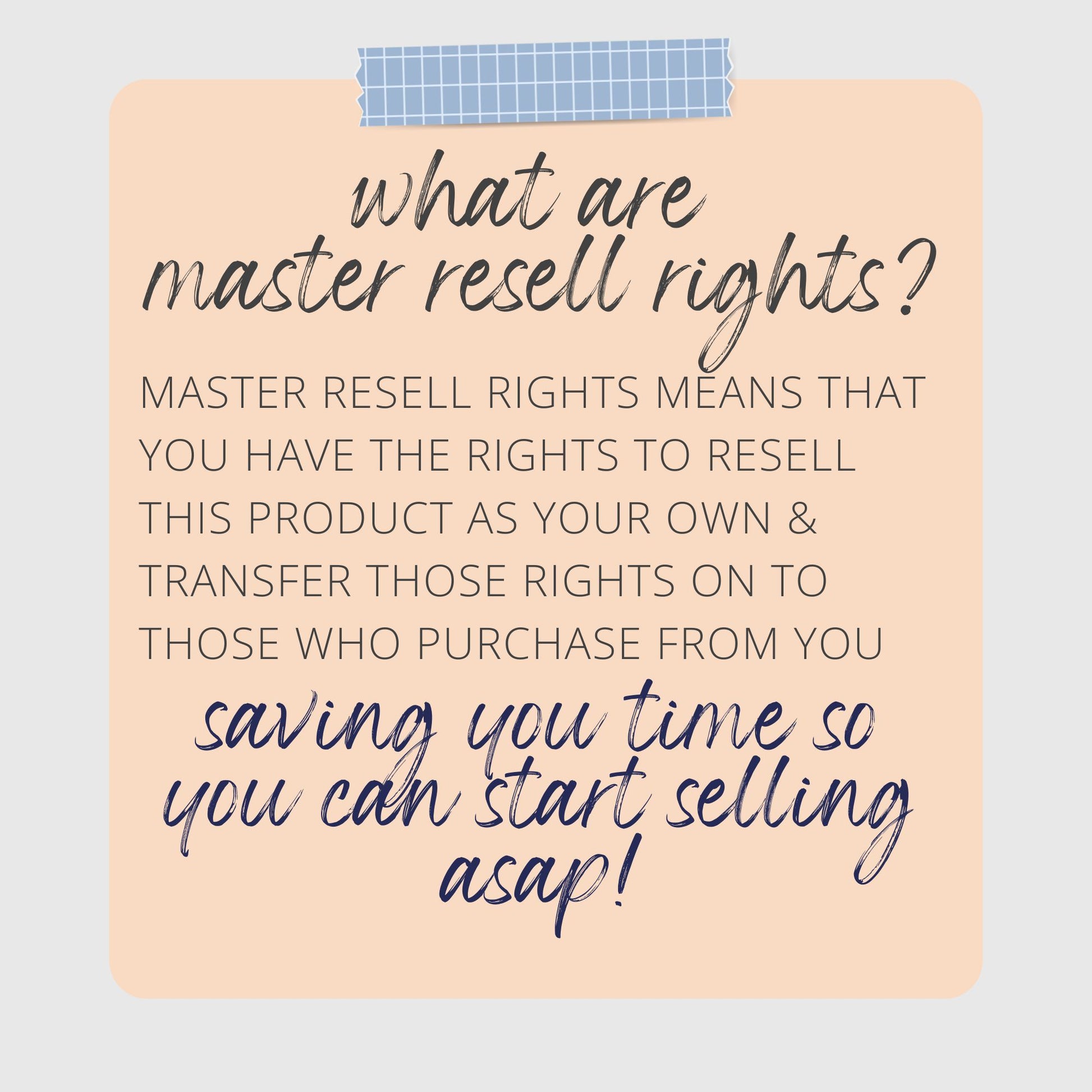 Master resell rights are included, but you may not use this shop’s listing copy or images.